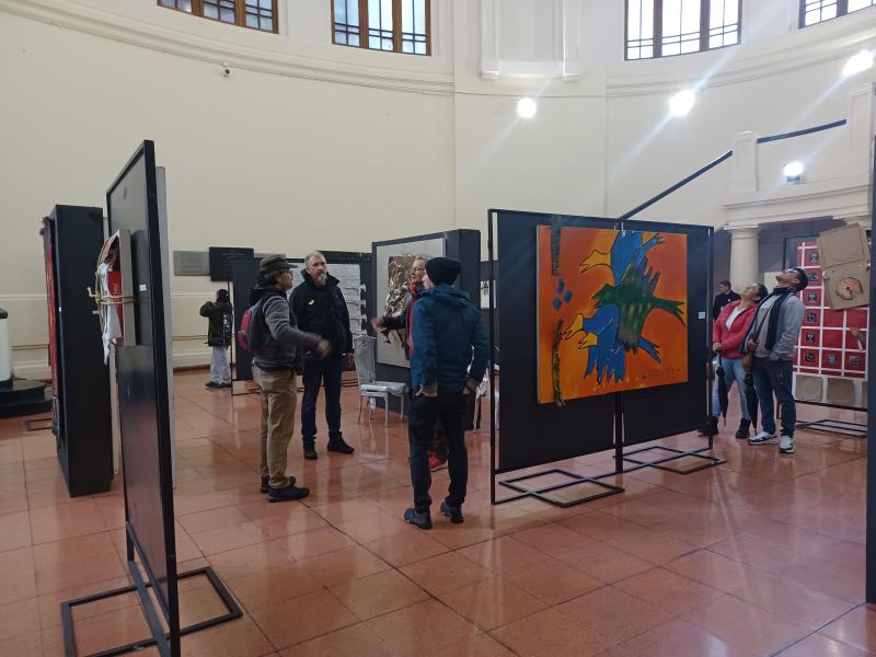 Otra exposición que los visitantes recorrieron fue “Sangre en el muro”, del artista chileno Nelson Mirada, compuesta por pinturas y esculturas que surgieron de la escritura de su novela “Vampiro del Melocotón”. En esta oportunidad, Miranda regaló y firmó su libro a las personas interesadas.