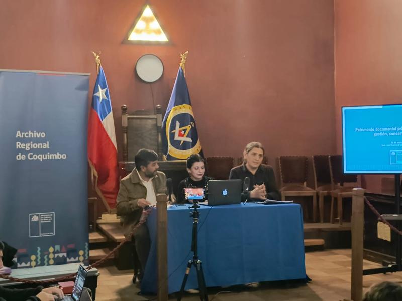 El martes 30 de septiembre se llevó a cabo, en la sede de la Logia Masónica Nº 11 “Luz y Esperanza” de La Serena, la charla “Patrimonio documental privado: fundamentos para su gestión, conservación y apertura” a cargo de Octavio Lagos Flores y Carolina Miranda González, funcionarios del Archivo Regional de Coquimbo (ARC), institución dependiente de la Dirección Regional del Servicio Nacional del Patrimonio Cultural.