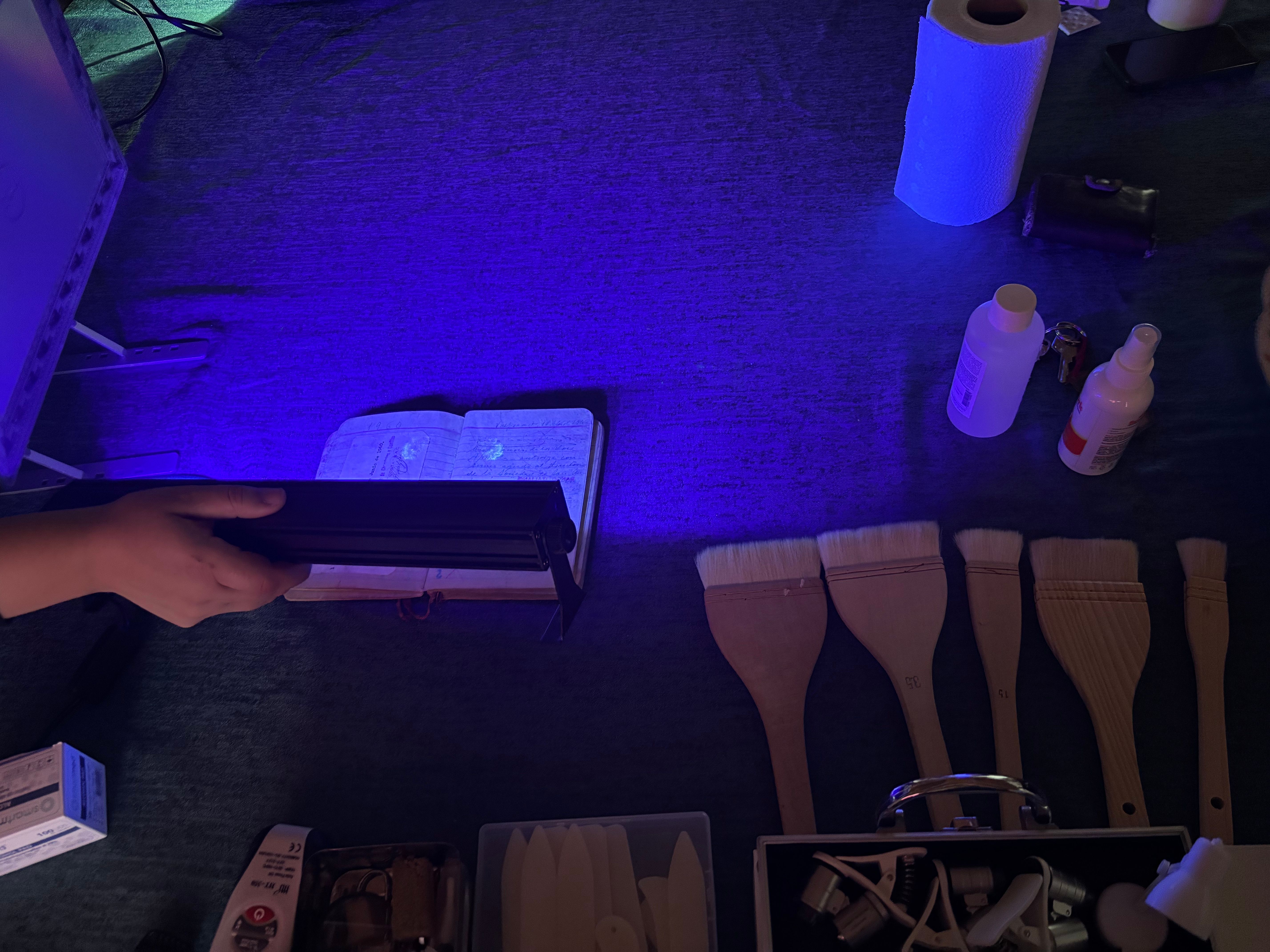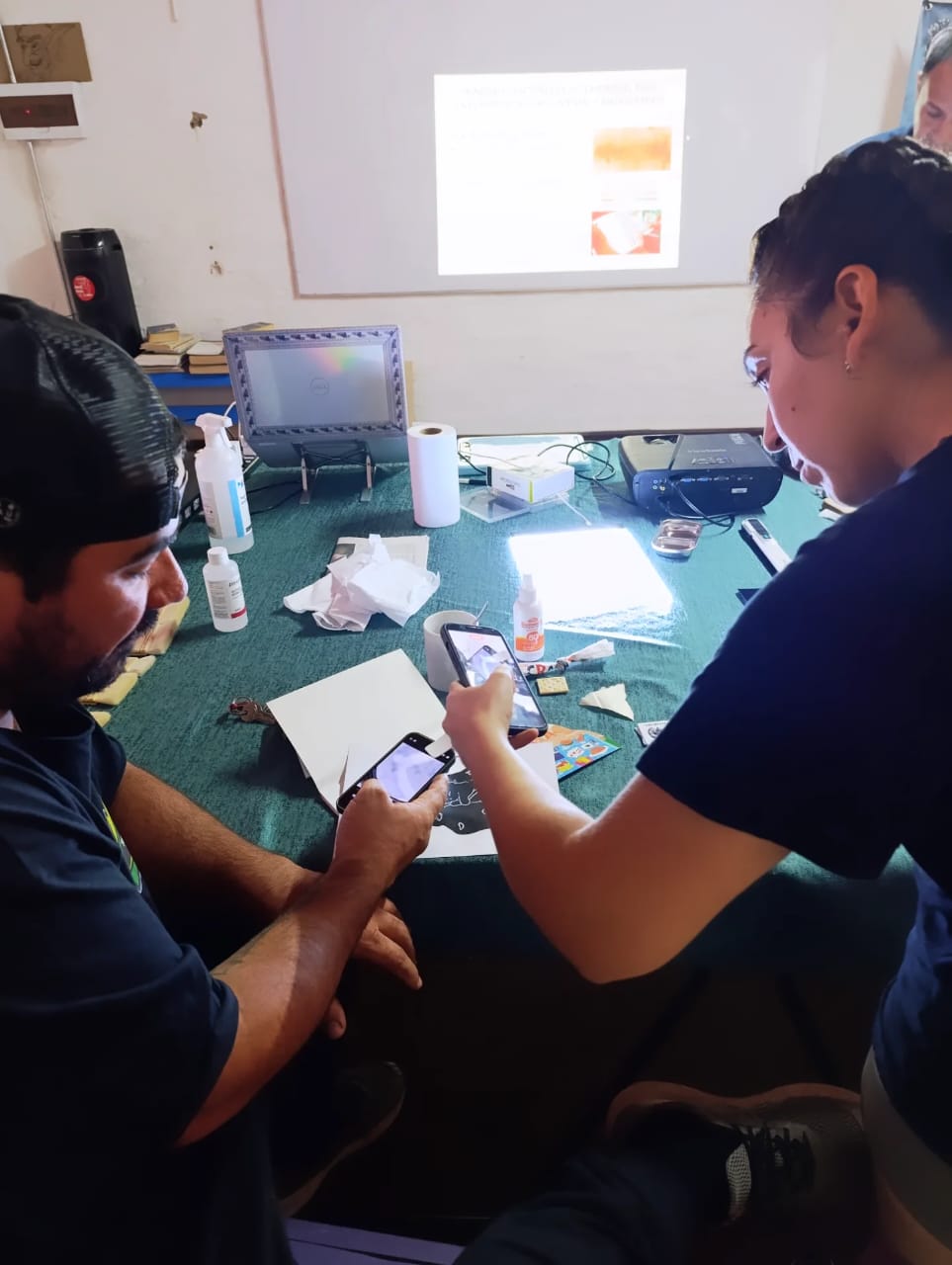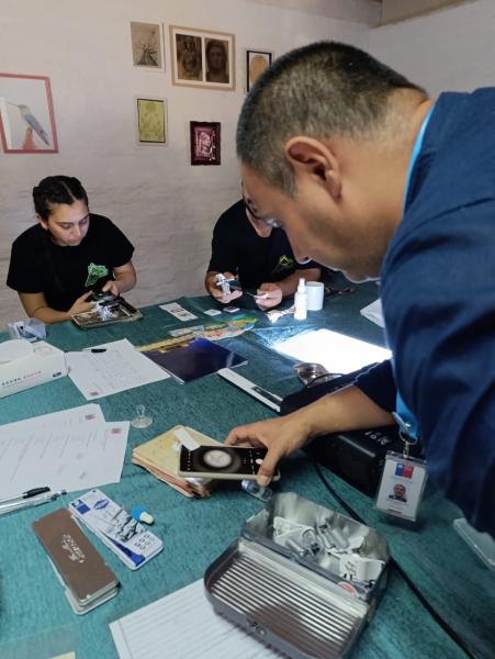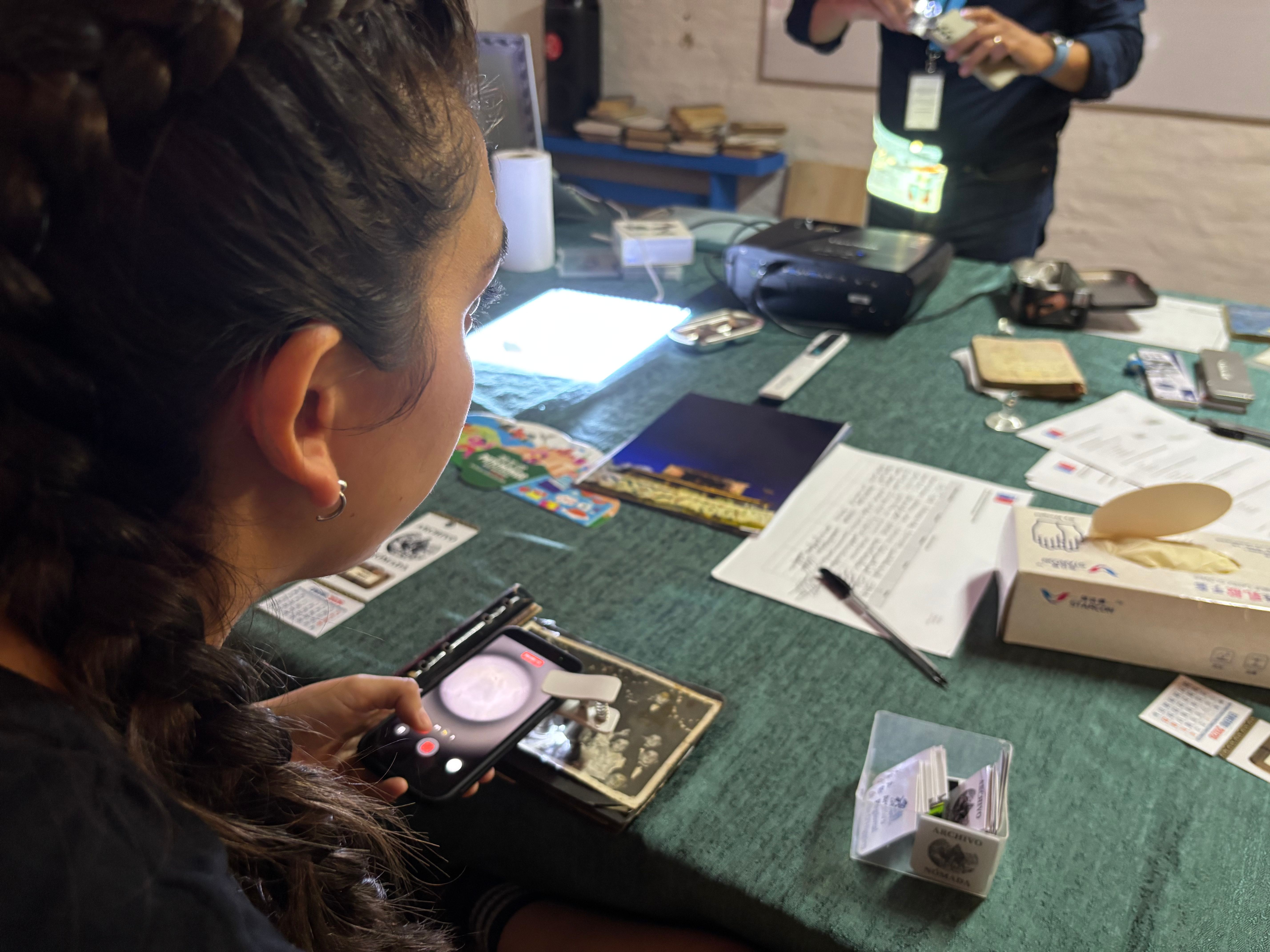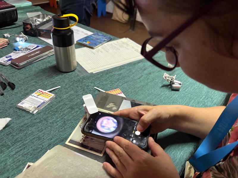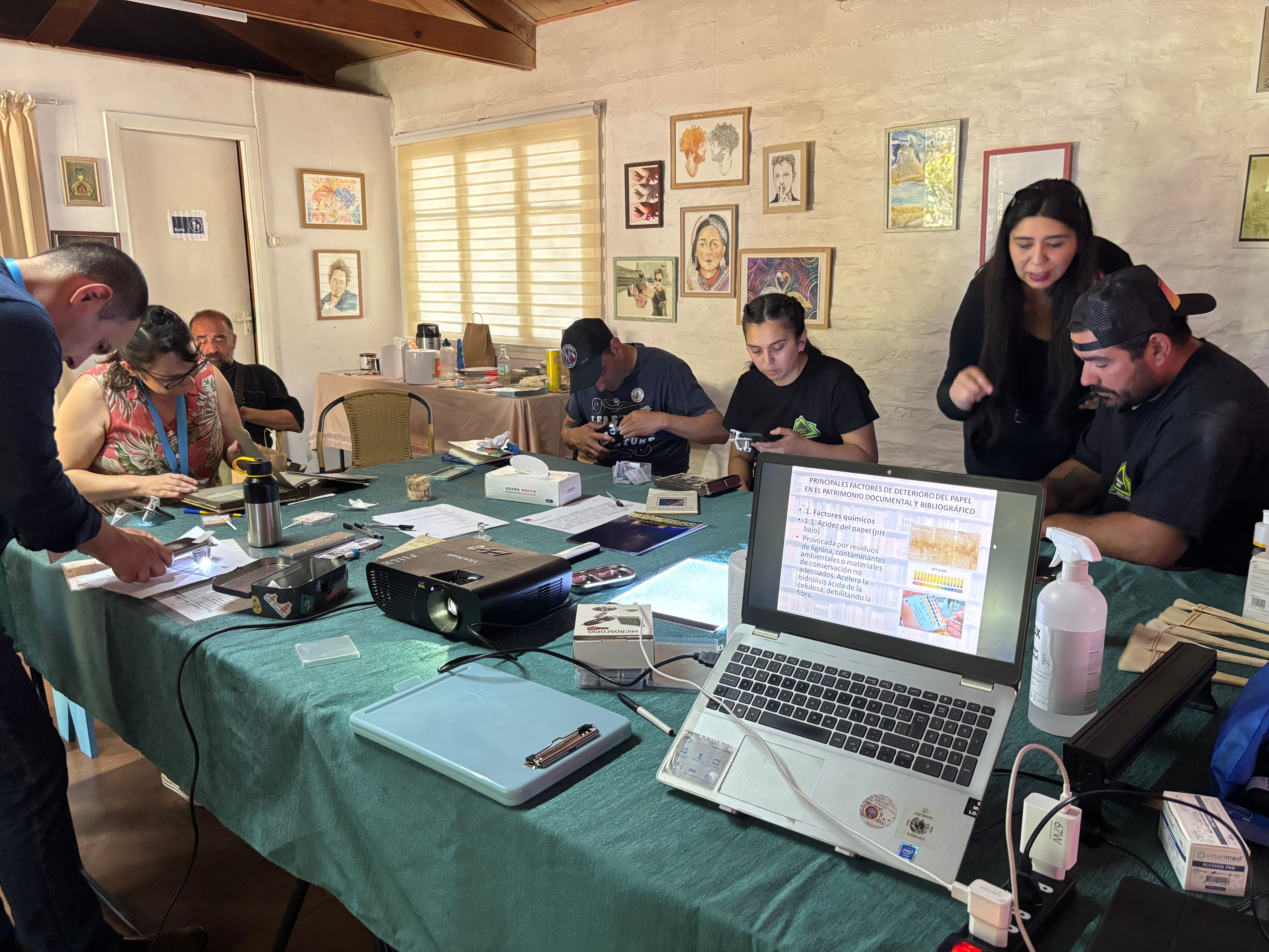 Las personas asistentes conocieron distintos materiales y técnicas de conservación, aprendieron a identificar papeles libres de ácido y analizaron, mediante microscopio, las fotografías que ellas y ellos mismos llevaron al taller. Asimismo, pudieron observar la presencia de organismos biológicos que habitan en los documentos, a través del uso de luz ultravioleta.
