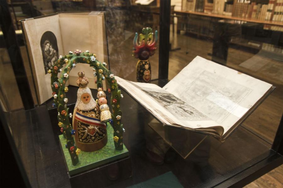 Montañas, alerces, volcanes, pueblitos, pájaros carpinteros, ballenas, araucarias, vírgenes, campesinas, machis y personajes de la fiesta de La Tirana, son algunas de las representaciones que se podrán apreciar próximamente en la Biblioteca Patrimonial Recoleta Dominica, en un diálogo único con las colecciones patrimoniales, junto a obras de Rodulfo Amando Philippi y Claudio Gay, que serán algunas de las más reconocibles y destacadas que desde el 13 de octubre a las 12:00 horas se podrán apreciar en la Biblioteca.