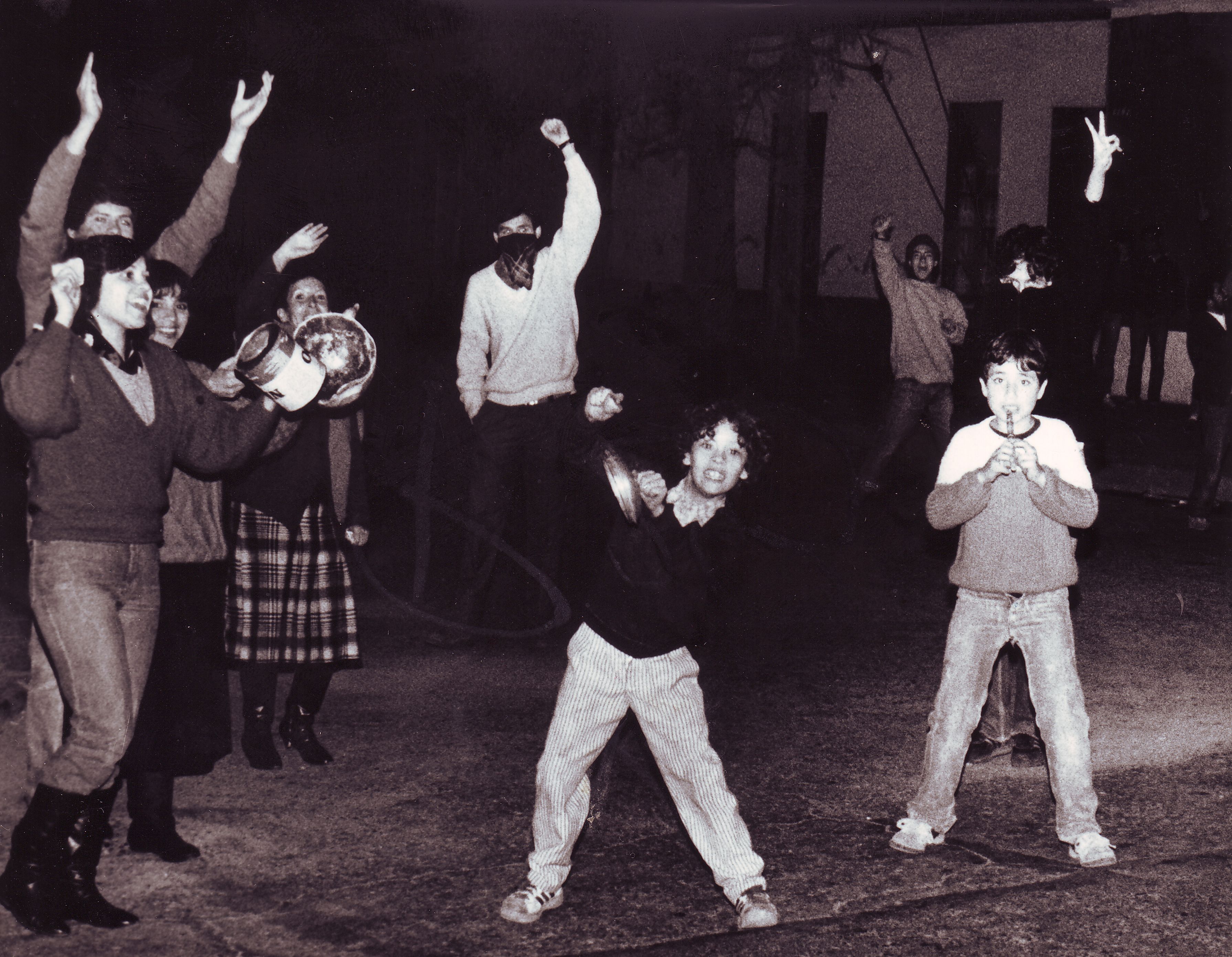 Foto B: Cacerolazo en período previo al plebiscito, 1988. Fotógrafo: Ricardo González. Fondo Fortín Mapocho, Archivo Nacional de la Administración: CL ARNAD AD-10-FFMAP-S56-FOT/FM B (01527).